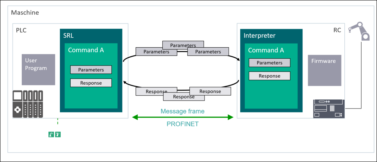 On the PLC side, templates or higher-level commandsor function blocks can also be created that combine multiple actions via the data interface.